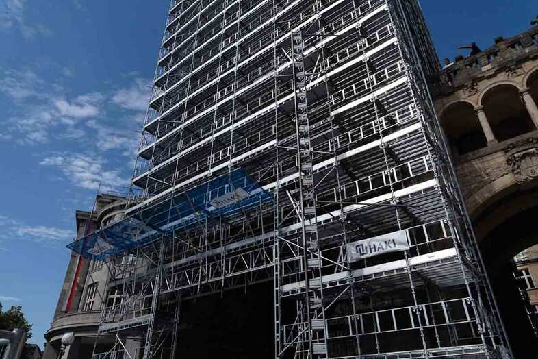 Le service exemplaire de dessin techniques de HAKI a identifié les risques à un stade précoce afin d'éviter les problèmes potentiels, en adaptant les systèmes aux exigences spécifiques de ce projet. Le bâtiment a ainsi pu continuer à être utilisé pendant que l'équipe de restauration avait un accès total à l'extérieur de la tour pour effectuer ses travaux minutieux. HAKI a pris les devants dès le début du projet, fidèle à son engagement de garantir la sécurité tout en économisant des coûts imprévus.